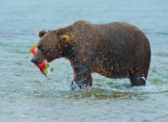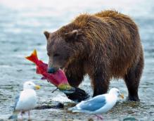 Inland Rivers - This will entail a flight to Katmai N.P. with a short hike to the river to view the bears feeding on salmon as they spawn. Thousands of Sockeye salmon are stuffed in little streams and rivers, easy for the bears to eat. Your Photos will be the envy of all who see them and the stories will live on forever.